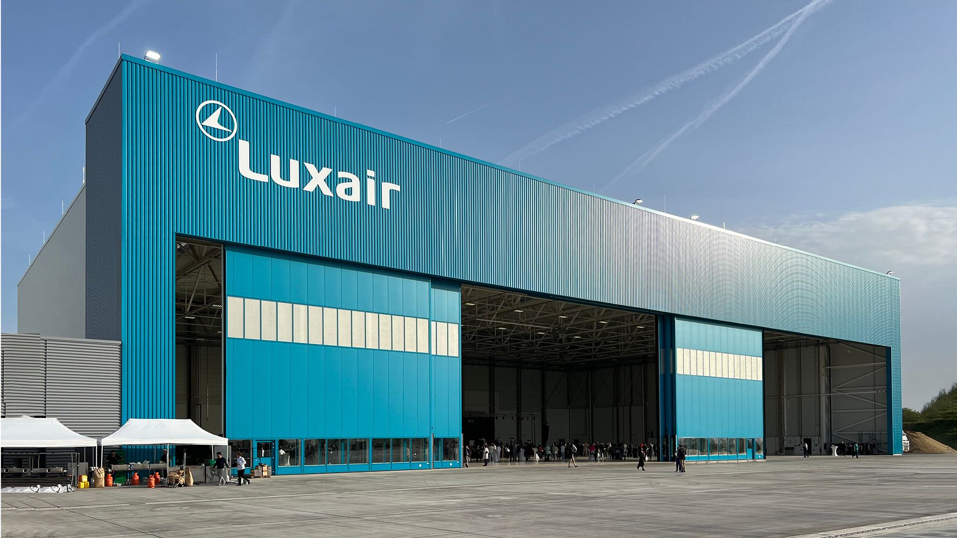 Le hangar, de dimensions au sol 91,80 x 57,30 m, permet d’accueillir trois avions. Sa hauteur totale est de 22,50 m. La charpente métallique de toiture est composée de treillis entre-distants de 6,20 m (de portée 56 m) reposants sur des colonnes en béton armé. Sur les portails, deux portiques de portée 87 m (hauteur 7,80 m et 6 m) transfèrent les charges aux extrémités du hangar, pour une flexibilité maximale des portails et de disposition des avions.