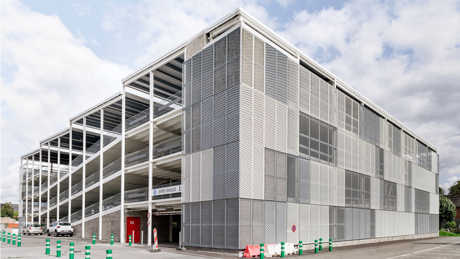 Le parking du personnel (plan rectangulaire compact de 40x60 m, 379 places de stationnement) du CHU Ambroise Paré à Mons est un parking ouvert construit sur base de composants préfabriqués en acier et privilégiant une approche d'éco-conception. Ce nouvel ouvrage constitue une infrastructure de mobilité à énergie positive, tournée vers l'avenir et reflétant une image écoresponsable de l'hôpital universitaire.