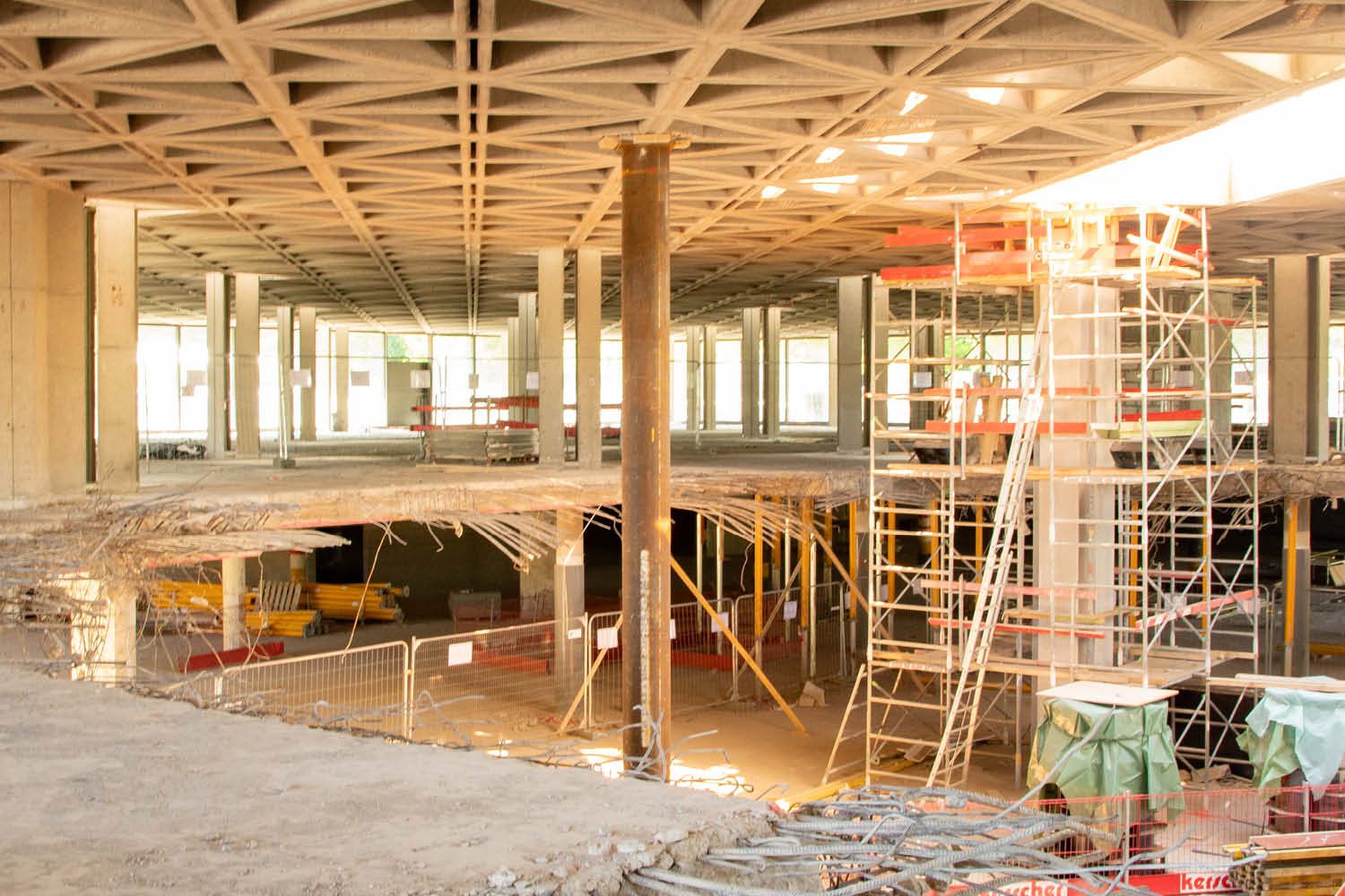 Het iconische ‘Royale Belge’ gebouw in Watermaal-Bosvoorde met zijn bronskleurige beglazing en weervast stalen (‘corten’) in de buitengevels wordt gerenoveerd en gerestaureerd.